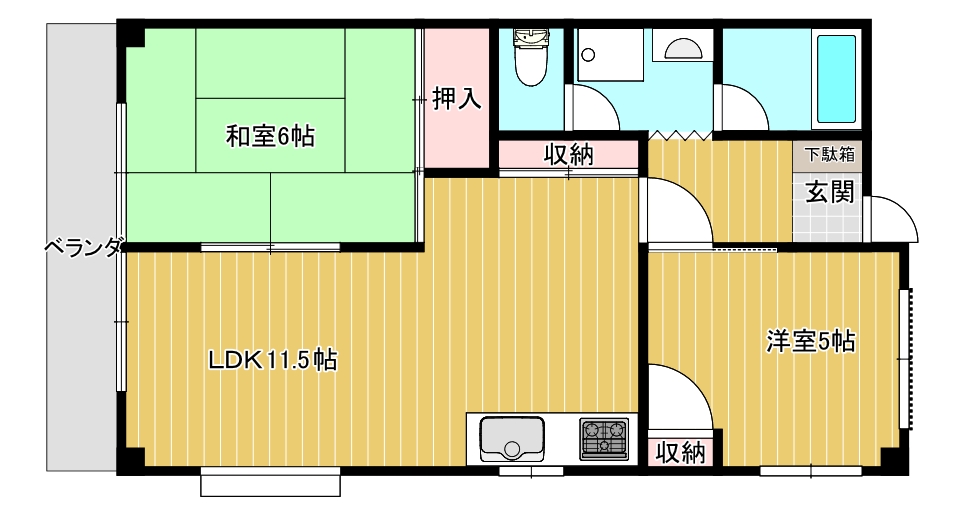 リビング収納もある使い勝手のよいLDK11.5帖 和室6帖、洋室5帖