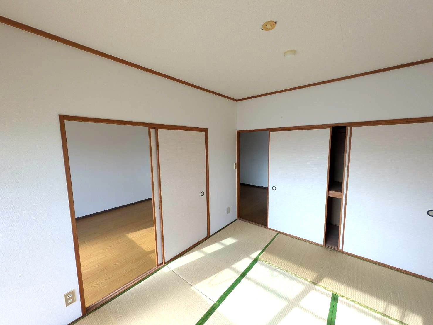 DKに続く明るい洋室と和室の使い方で家族団らんの住まい。バス停1分の立地、敷地内駐車場(別途契約)も完備。